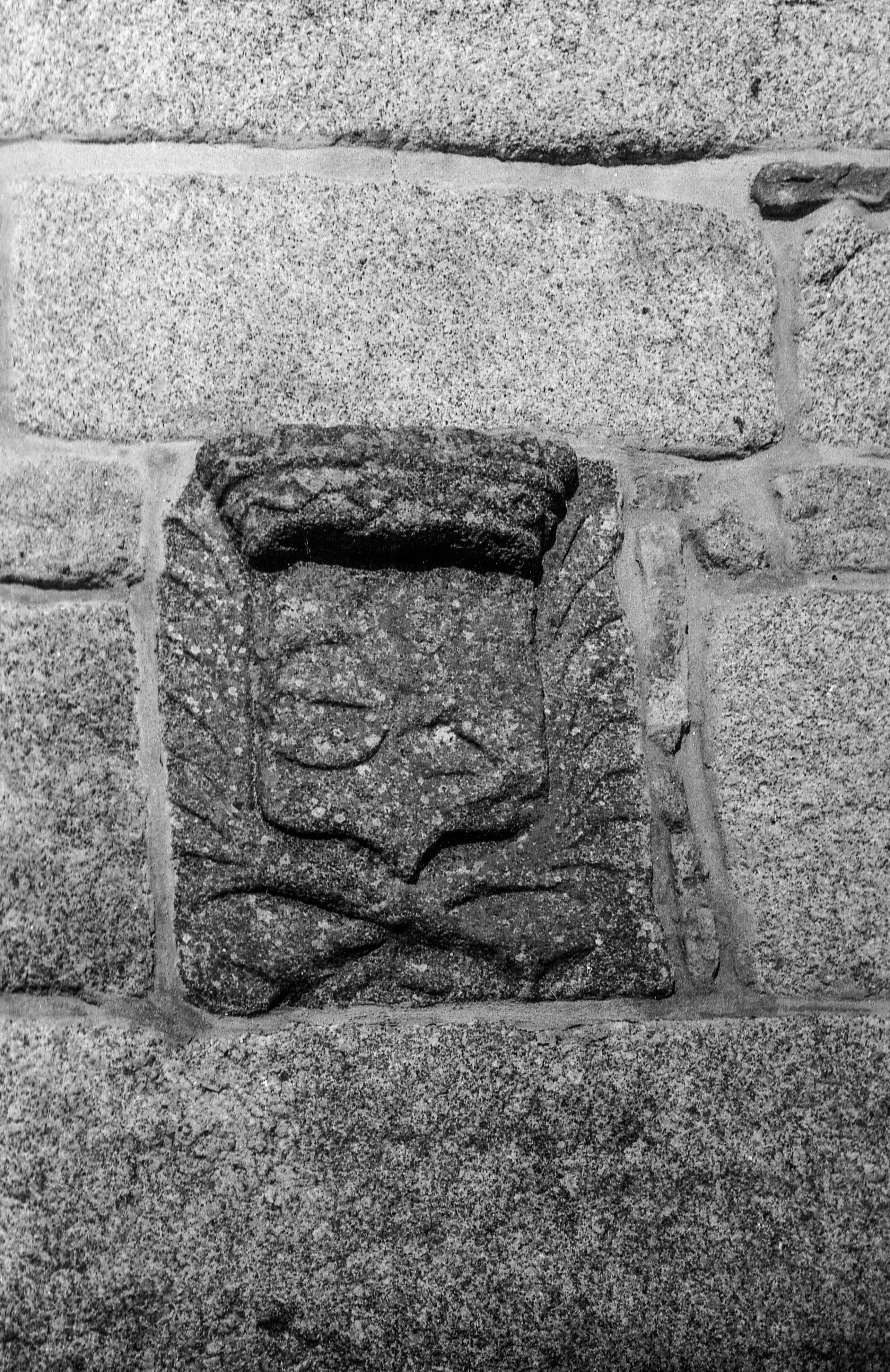 La Croix, manoir : à droite de la porte une pierre porte des armoiries d'alliance : mi-parti à dextre de gueules au fermail d’argent (famille de Kersauson) ; à senestre d'or - au lion couronné de gueules (famille de Kersauzon) (état en 1974)Immatriculation