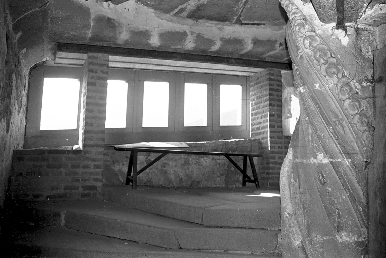Vue intérieure, escalier : premier niveau d'arcatures [état en 1973]Immatriculation