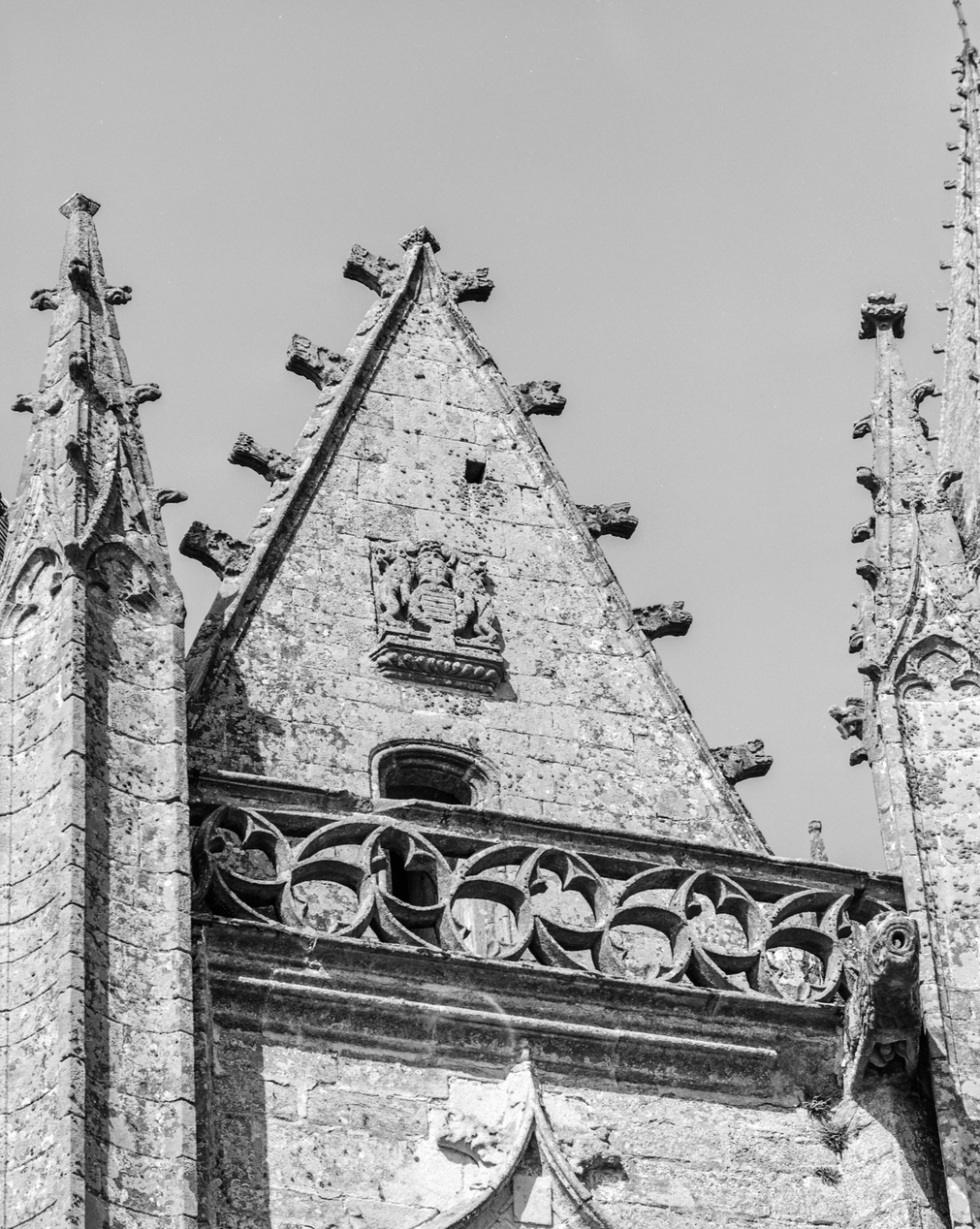 Détail des armoiries sur le pignon du chevet à l'est.Immatriculation
