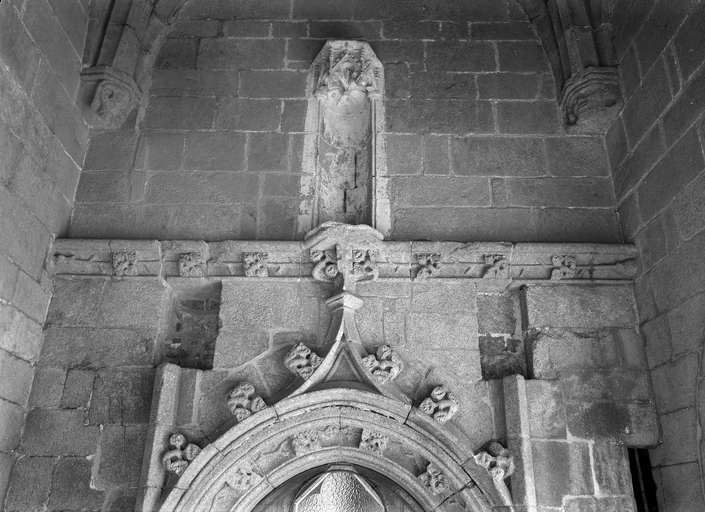 Détail de la corniche moulurée au-dessus de la porte intérieure du porcheImmatriculation