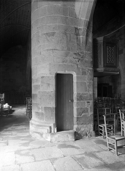 Vue de la troisième pile d'escalier sud avec vue de la porteImmatriculation