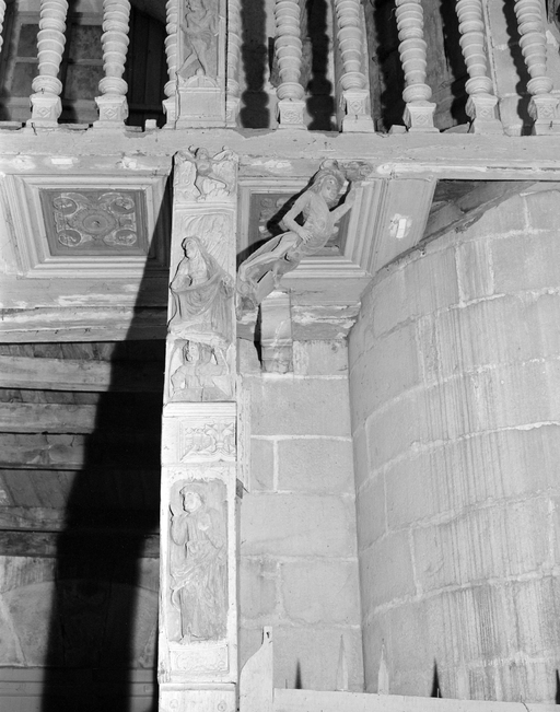 Tribune ouest : panneaux sculptés des colonnesImmatriculation