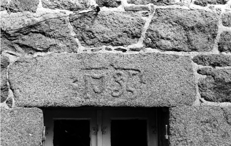 Détail, linteau millésimé (cliché Sylvaine Laffiché, pré-inventaire, 1975)Immatriculation