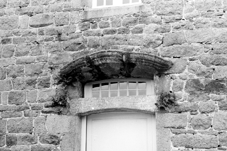 Vue détaillée, corps de logis, façade antérieure, porte d'entrée (cliché Sylvaine Laffiché, pré-inventaire, 1975)Immatriculation