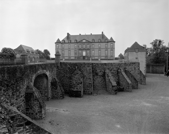 Château vu des douves depuis le chemin en contrebas.Immatriculation