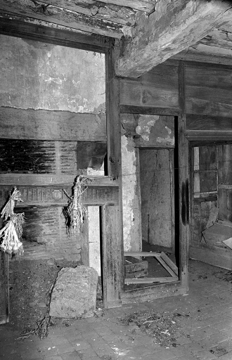 Vue intérieure, 1er étage, pièce ouest, cheminée, mur est ; état en 1975Immatriculation