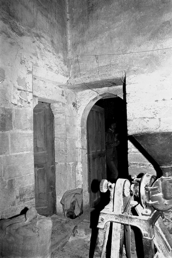 Vue intérieure, 1er étage, 'chambre de retrait' : portes d'accès ; état en 1975Immatriculation