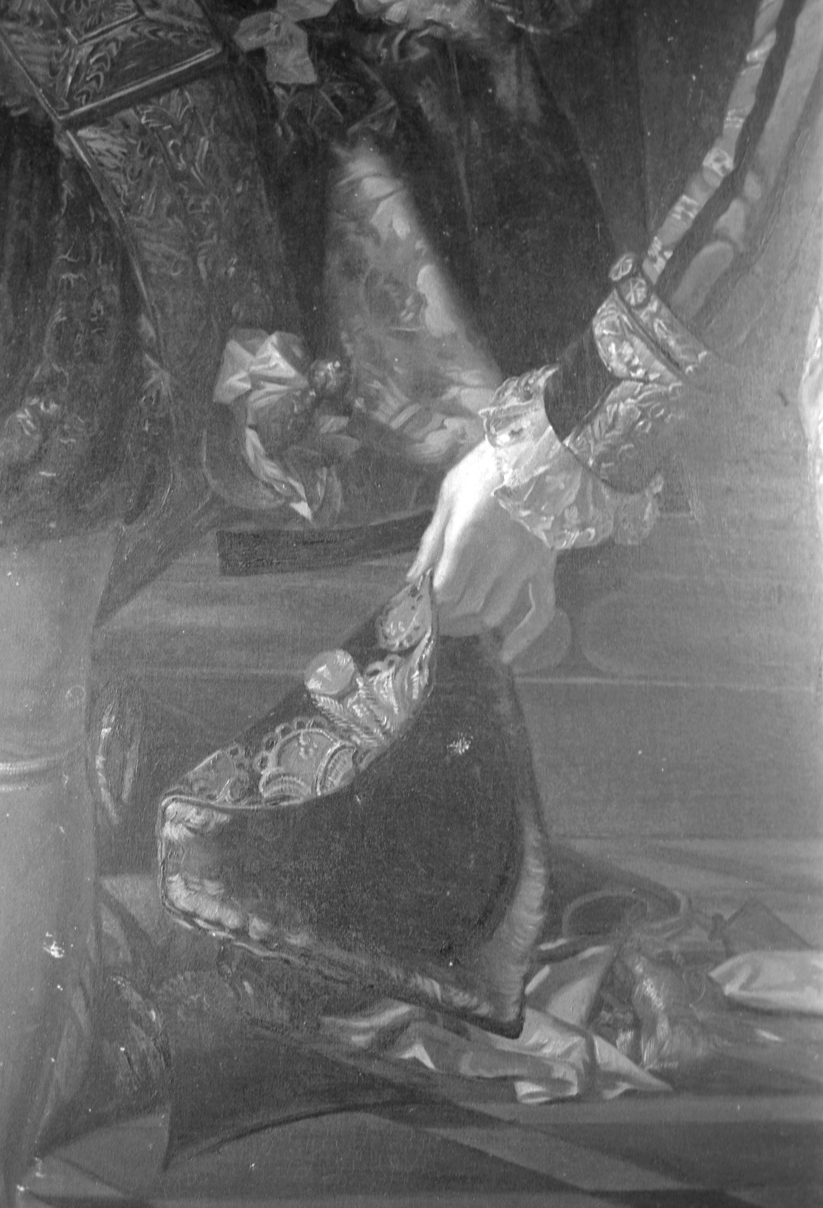 Tableau - Portrait du duc de Cossé-Brissac par A. Le Bihan (1881) d'après l'original de L. R. Trinquesse, 1777. DétailImmatriculation
