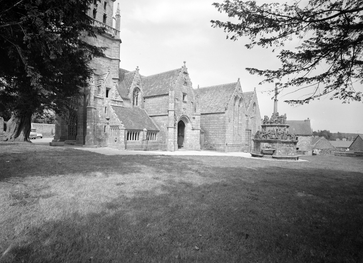 Vue générale de l'église et du calvaire prise du sud ouestImmatriculation