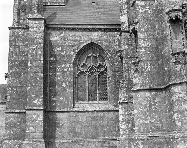 Façade sud, détail de la fenêtre de la nef (à l'ouest du porche).Immatriculation