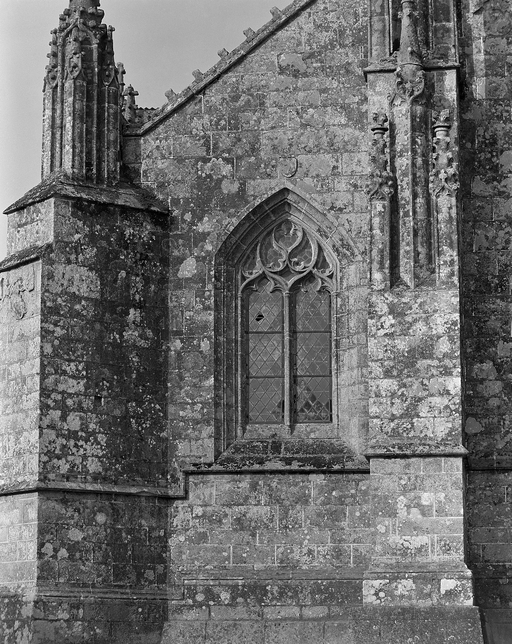 Façade est, détail de la fenêtre du bas côté sud.Immatriculation