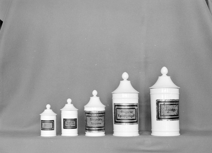 Collection de 199 pots à pharmacie - Série de cinq pots en faïence blancheImmatriculation
