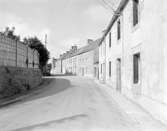 Pleubian, le bourg. Maisons construites à l'aplomb de la rue Erwan Berthou (cliché Guy Artur, pré-inventaire, 1977)Immatriculation