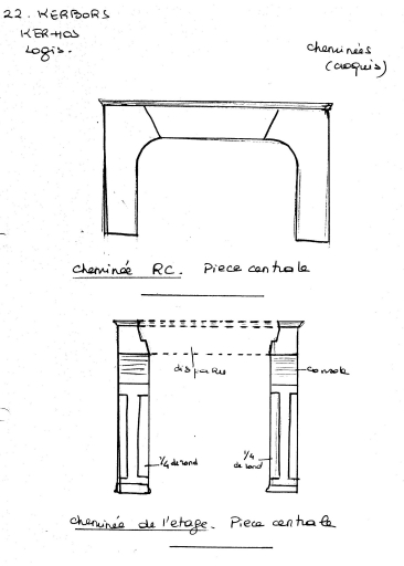 Cheminées du logis d'après croquis (pré-inventaire, avril 1977)Immatriculation