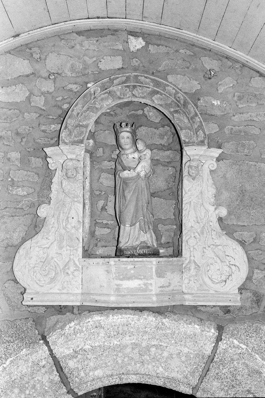 Porche sud : statue de Notre-Dame-de-Bonne-Nouvelle (état en 1977)Immatriculation