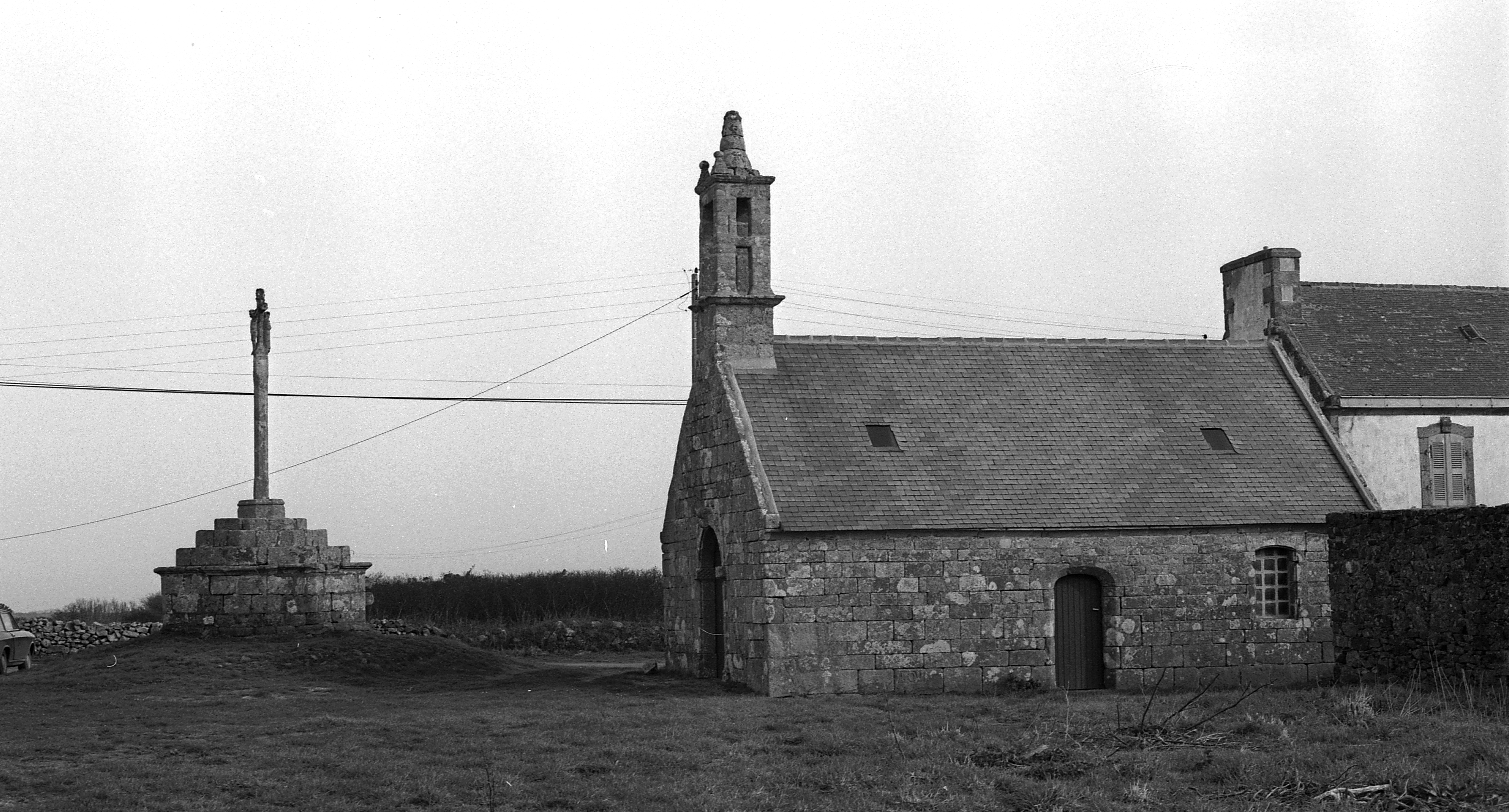 Chapelle et croix monumentale, vue générale prise du sud. (1977)Immatriculation