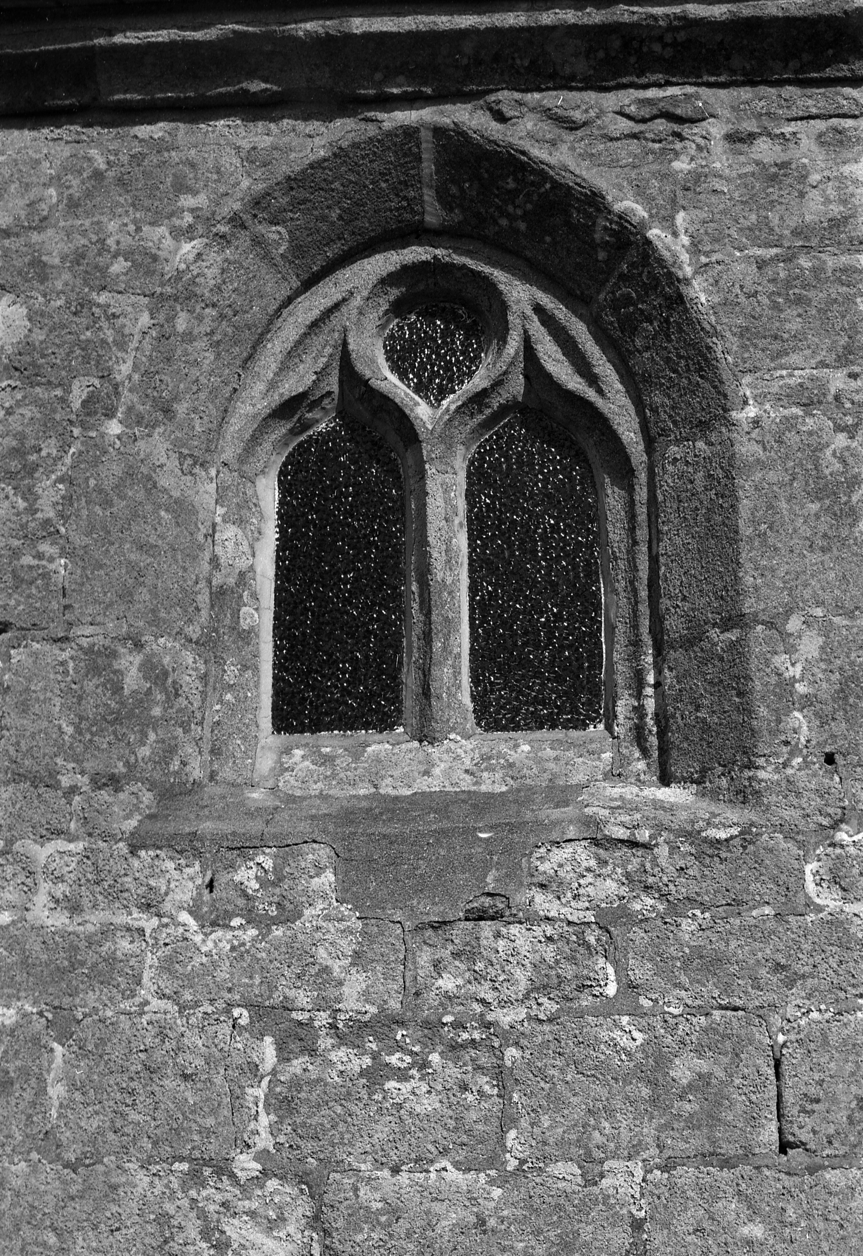 Façade ouest, détail de la fenêtre ogivale. (1977)Immatriculation