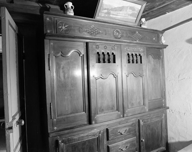 Lit-clos 5 face à la table "ar gwele tal-an-dol" (transformé en armoire). (1977)Immatriculation