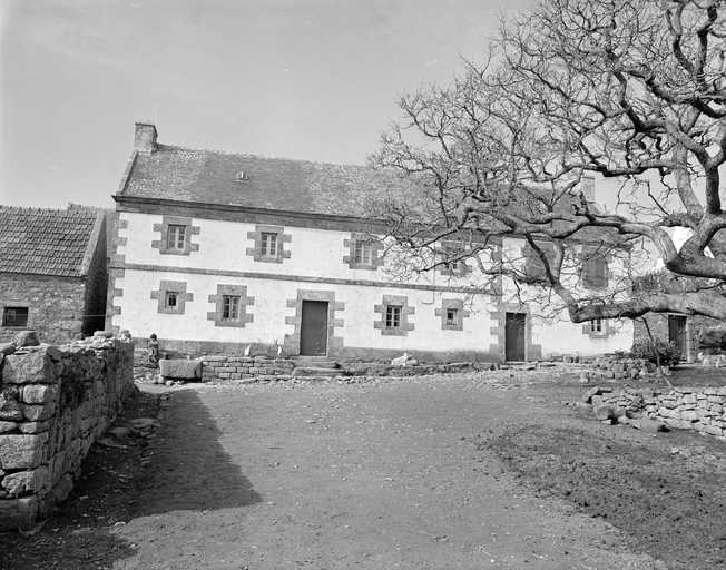 Elévation antérieure de l'alignement principal : logis et écurie datée 1840. (1977)Immatriculation