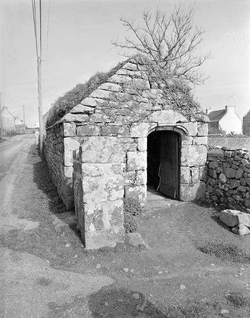 Fournil, pignon ouest et porte en réemploi. (1977)Immatriculation