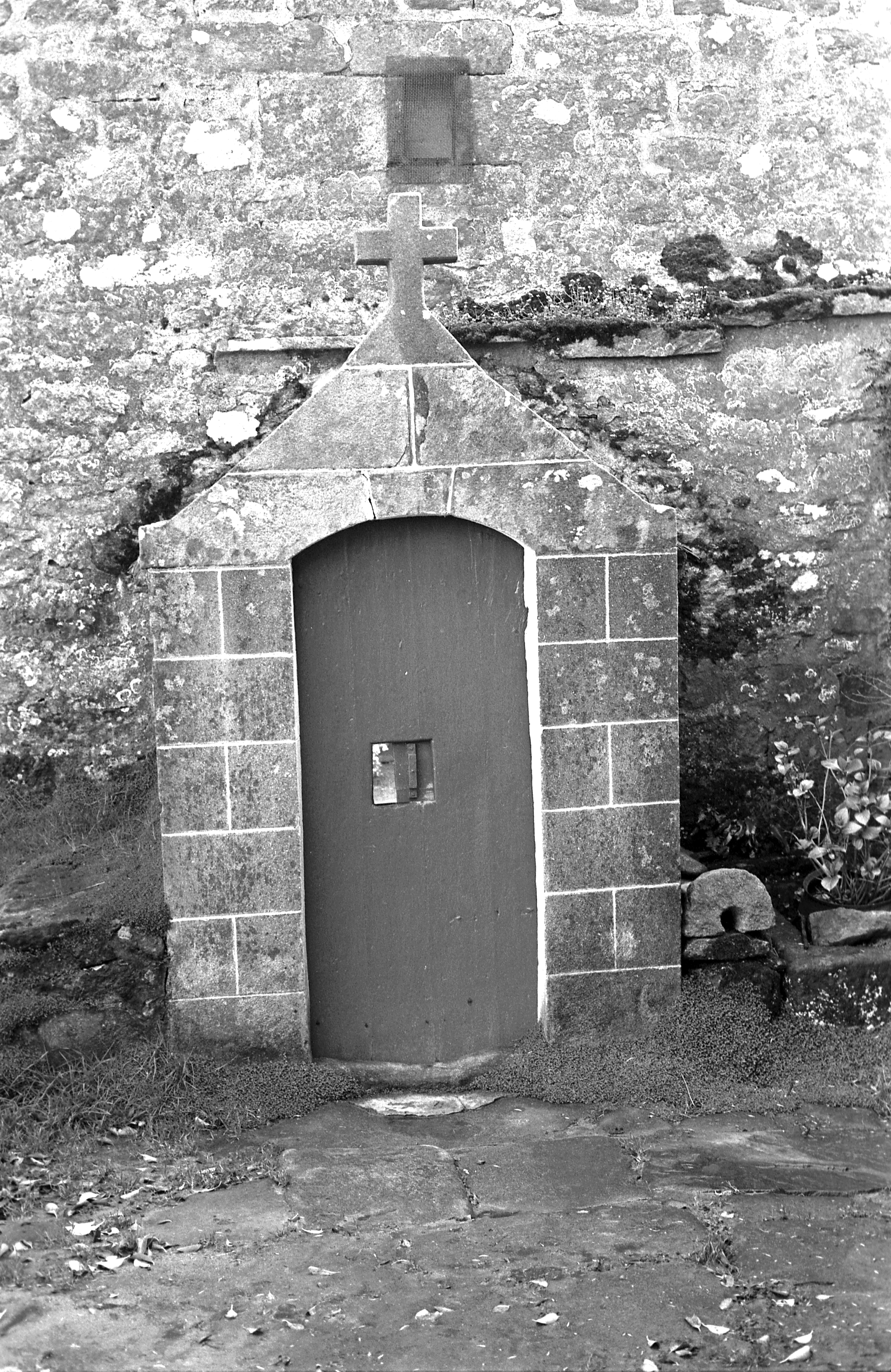 Logis, élévation nord, porche d'entrée. (1977)Immatriculation