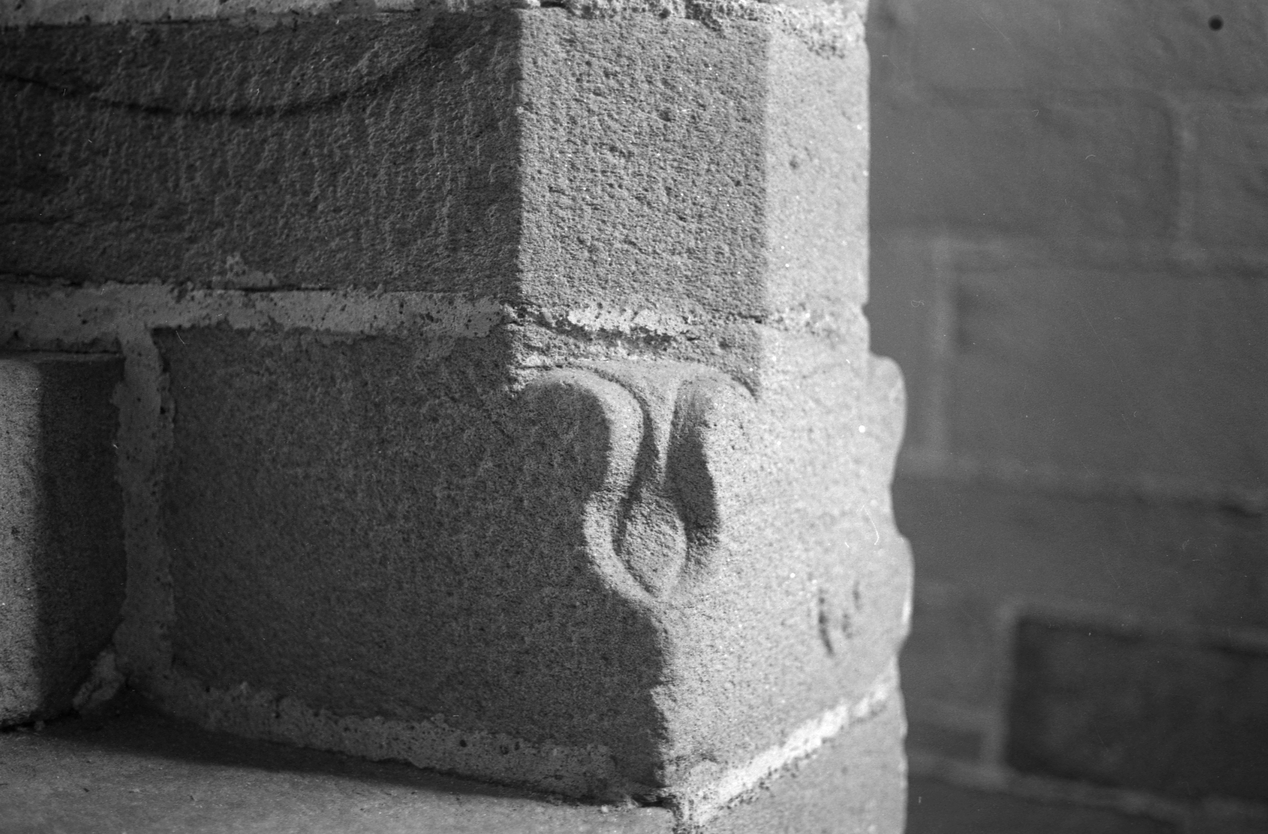 Logis daté 1661, escalier, base du mur-noyau. (1977)Immatriculation