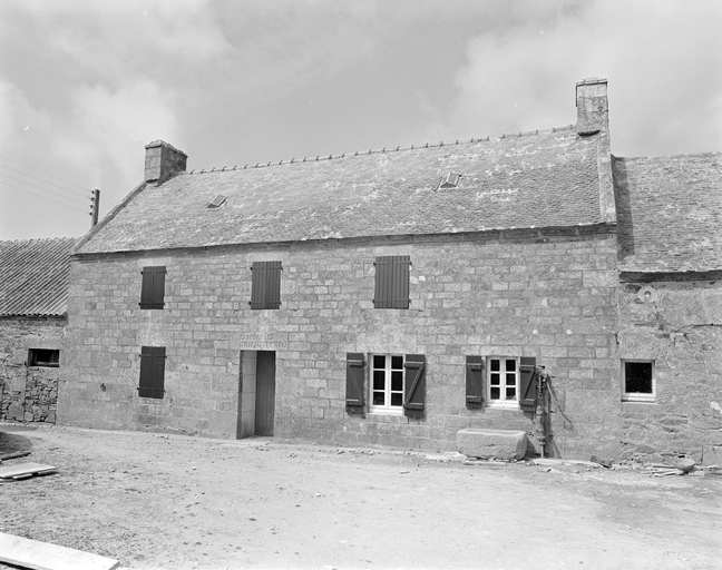 Kernot, ferme1, élévation antérieure du logis daté 1829. (1977)Immatriculation