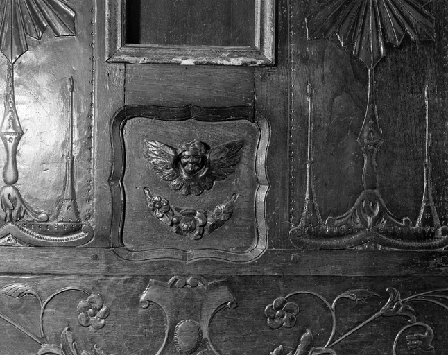 Drustuilh 19 daté 1900, détail de la "rosace" avec tête d'angelot. (1977)Immatriculation