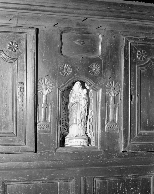 Drustuilh 36, détail de la niche à Vierge et décors. (1977)Immatriculation
