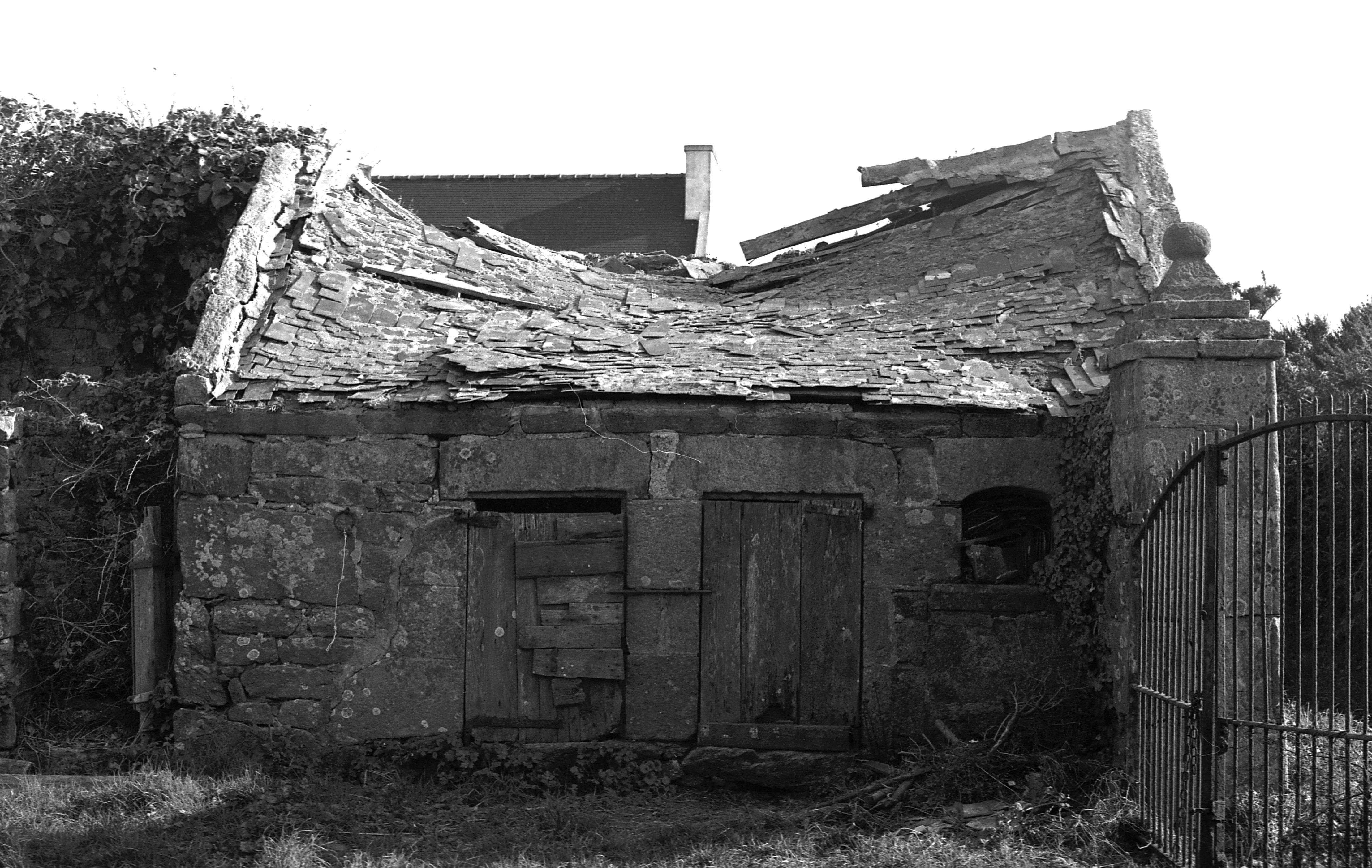 Meil Kerharo, petite ferme, crèches à cochons isolées en face du logis (1977)Immatriculation