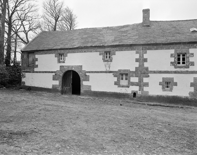 Alignement principal : élévation antérieure de la grange datée 1842. (1977)Immatriculation