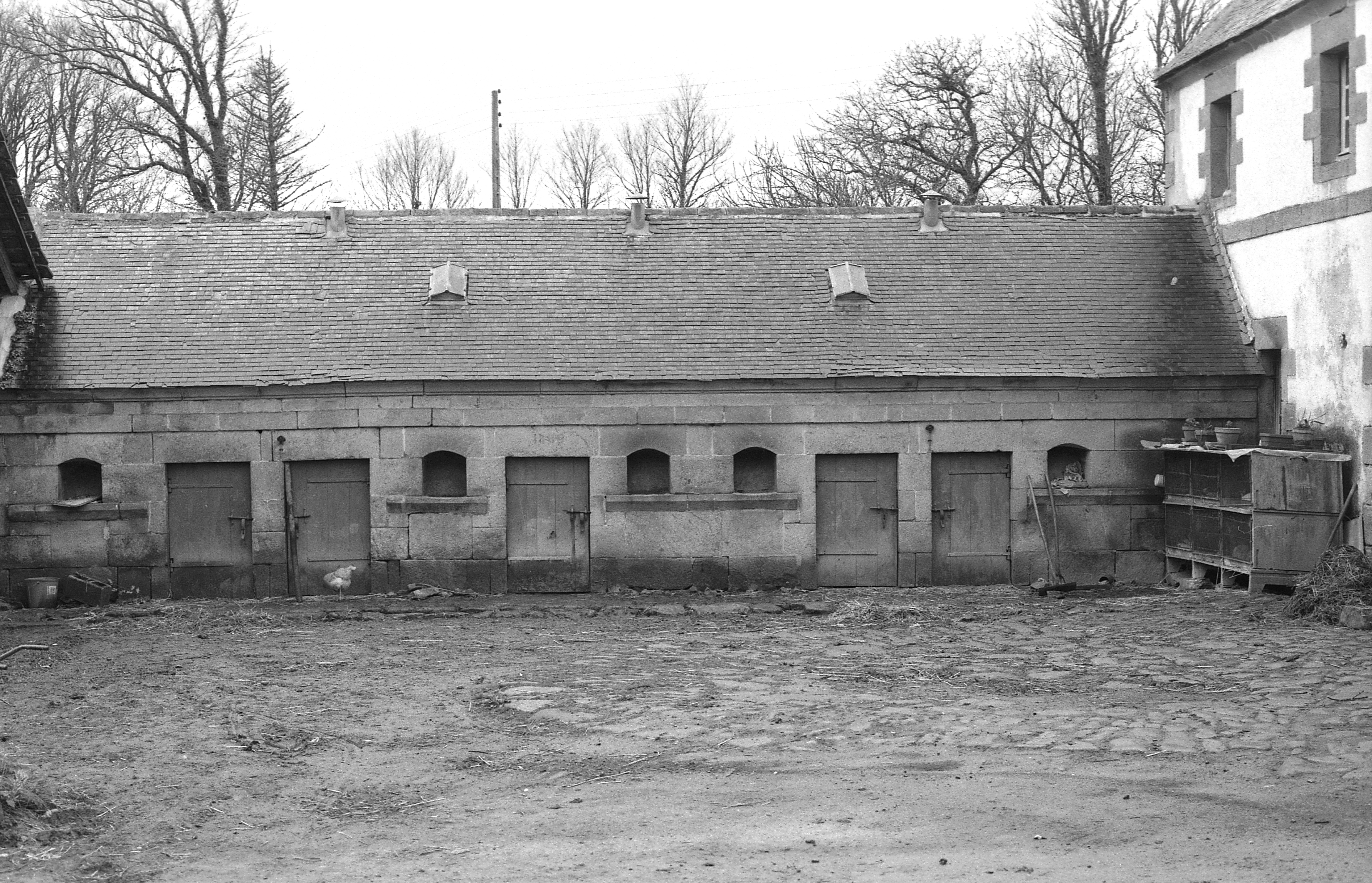 Crèches à cochons datée 1880, élévation est. (1977)Immatriculation