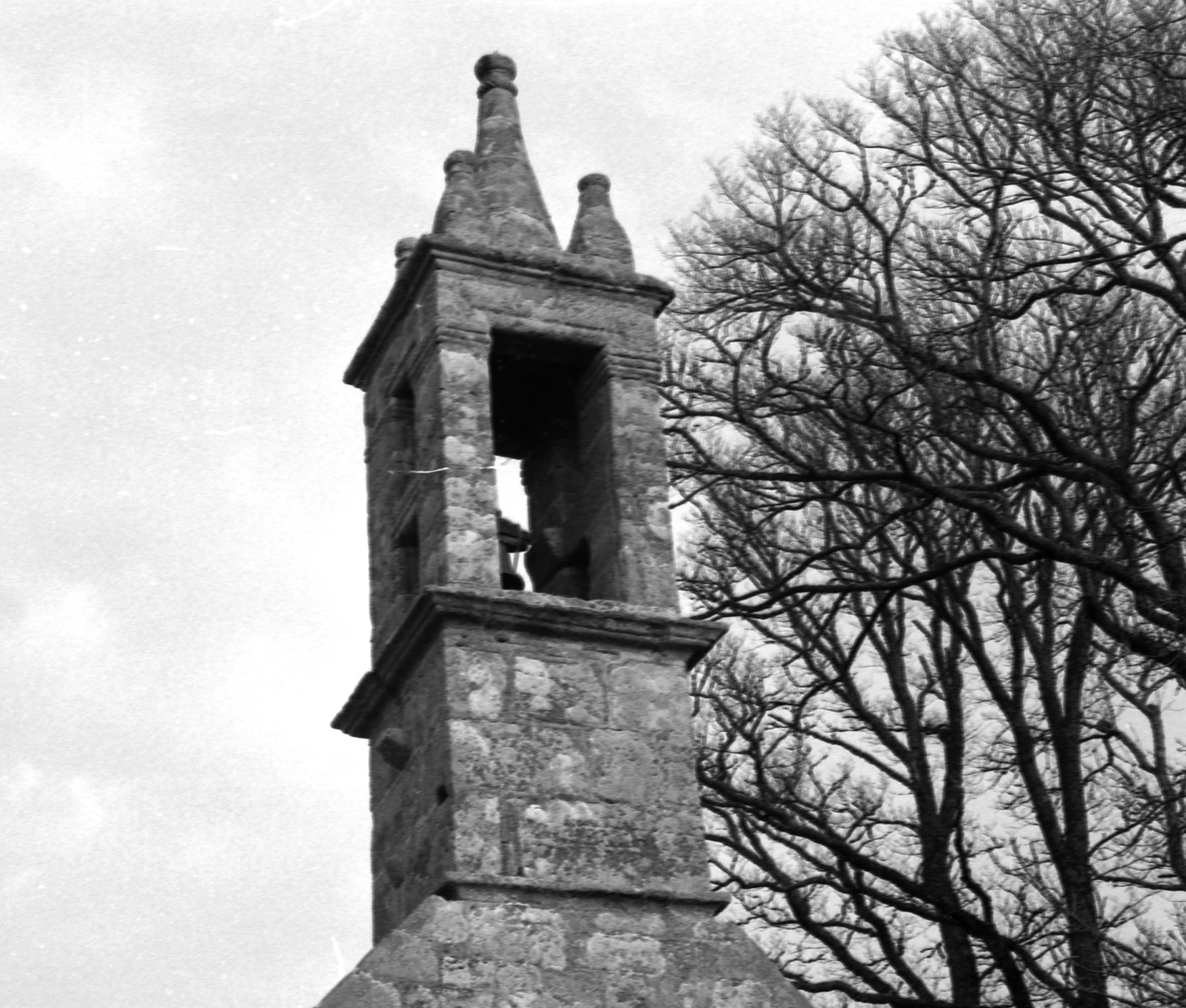 Pignon ouest, détail du clocher. (1977)Immatriculation