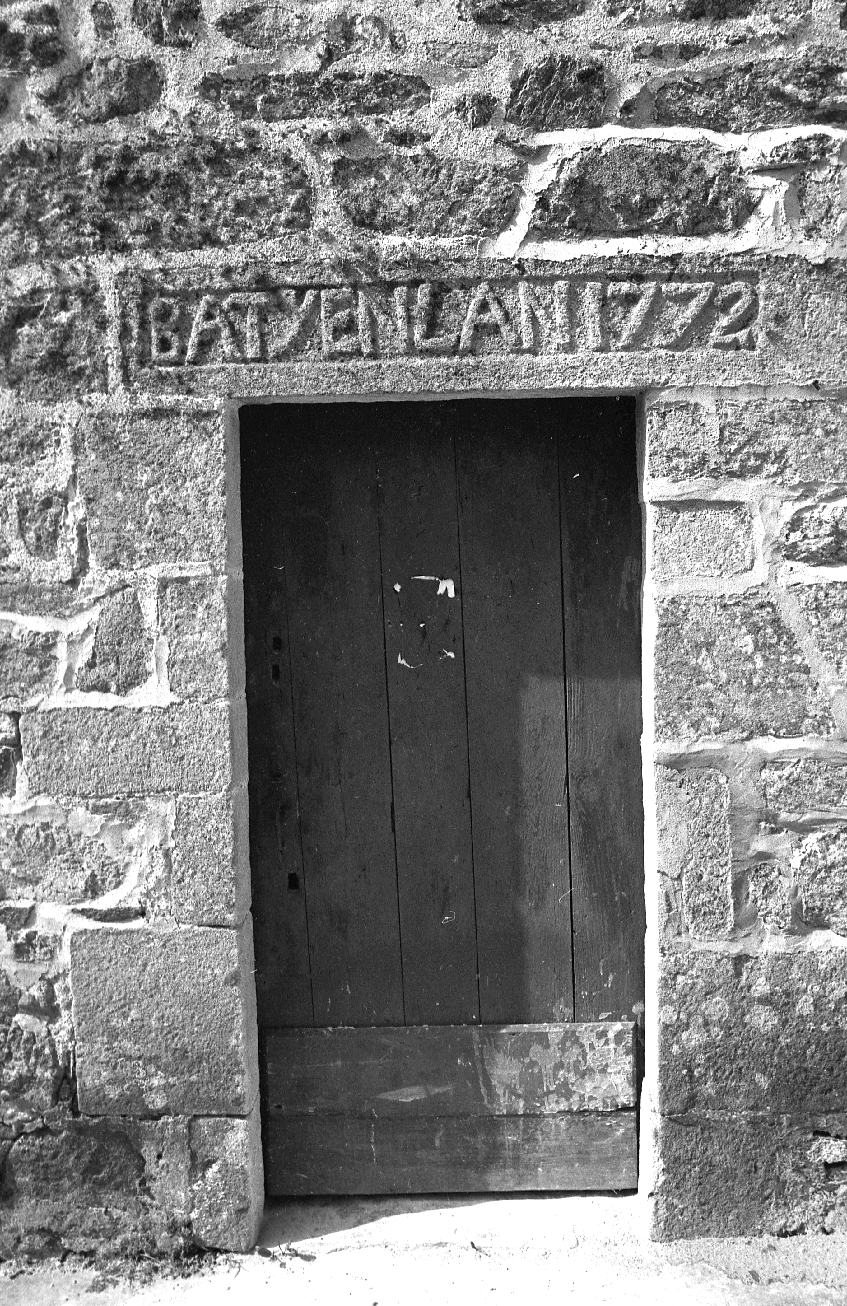 Porte est et inscription : BATYE EN LAN 1772. (1977)Immatriculation