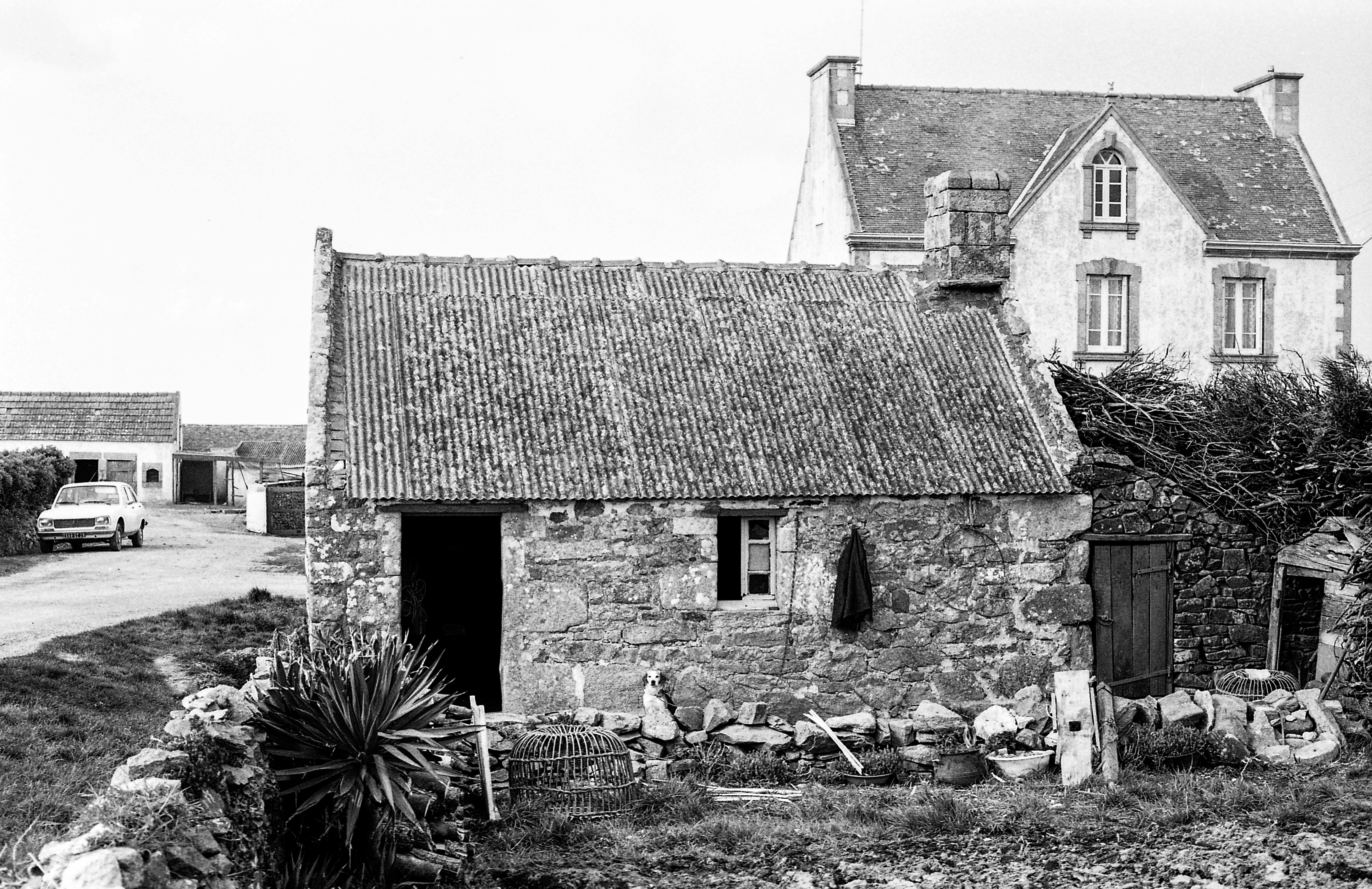 Elévation antérieure du logis et de sa crèche en appentis. (1977)Immatriculation
