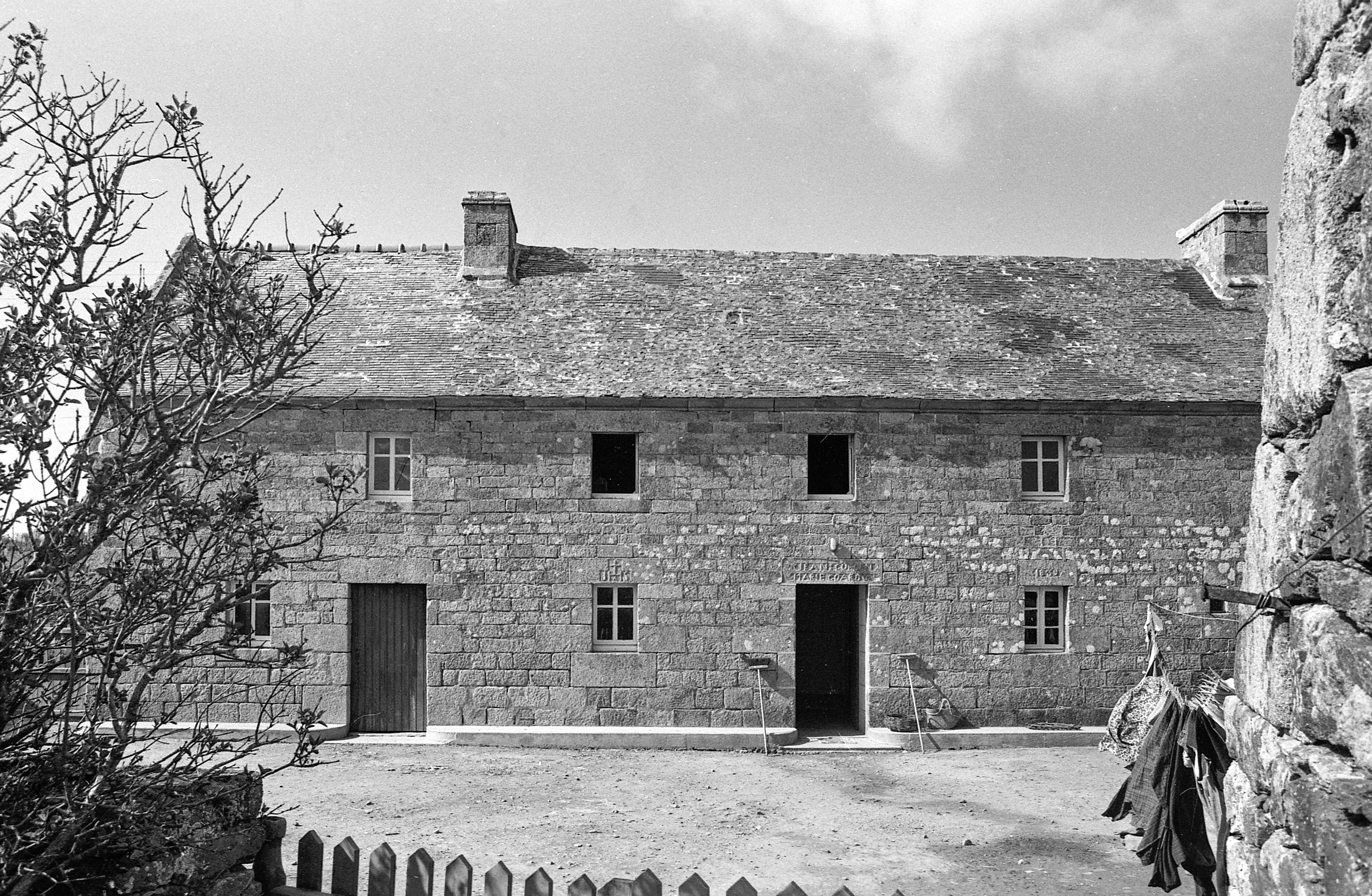 Elévation antérieure du logis daté 1839 et de son écurie attenante. (1977)Immatriculation