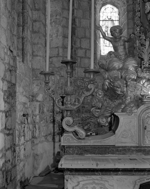 Intérieur, choeur, maître-autel : détail du chandelierImmatriculation