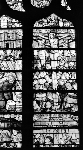Verrière 2, panneau b3, Crucifixion : ensemble des personnagesImmatriculation
