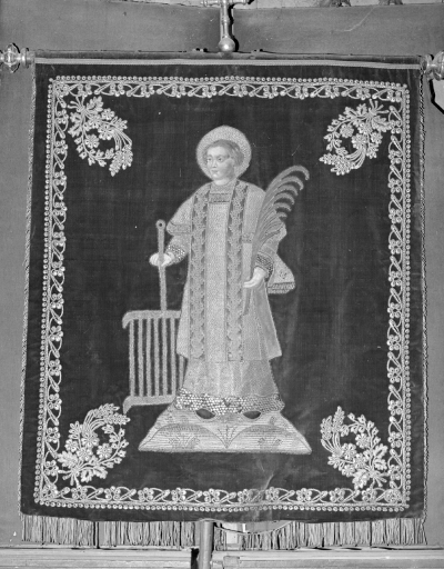 Bannière de procession paroissiale : Saint Pierre, Saint Laurent (Marcillé Raoul),