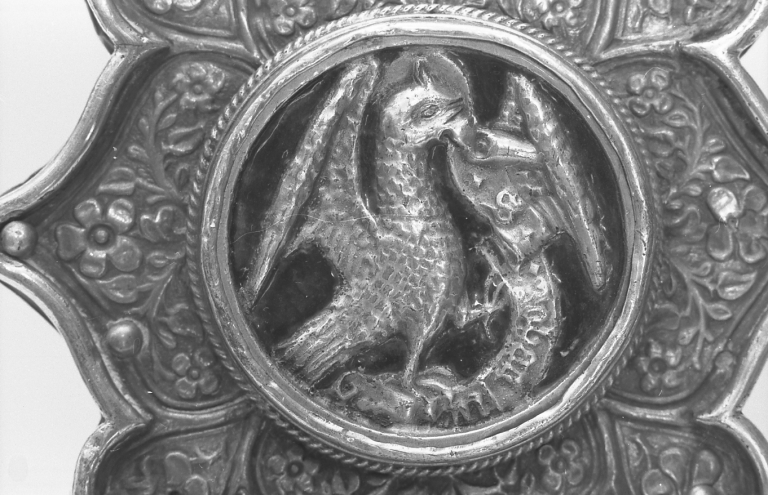 Face postérieure, fleuron inférieur : aigle de saint JeanImmatriculation