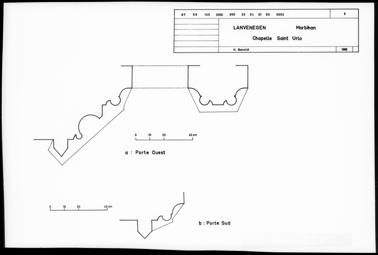 Coupe a: porte ouest, b: porte sud.Immatriculation