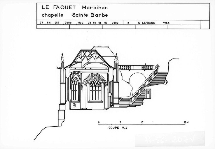 Coupe transversale sur l'abside, V-V (1965).Immatriculation
