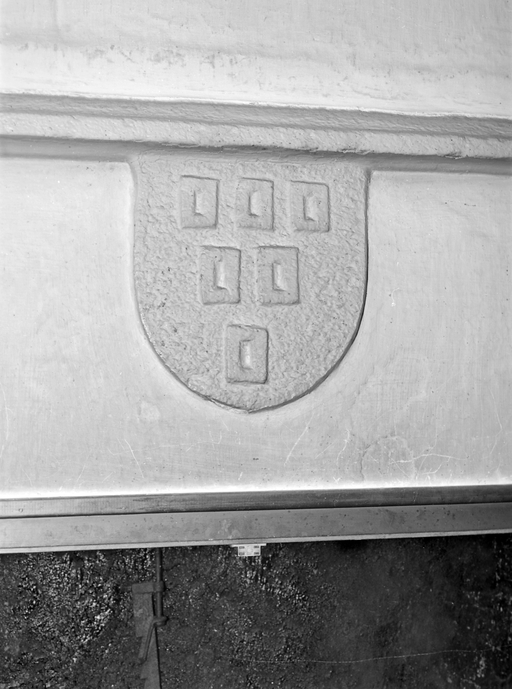 Manoir, armoiries sur la cheminée de la pièce nord logis rez-de-chaussée.Immatriculation