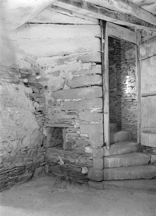 Manoir (vestiges), escalier à l'angle sud-ouest du logis.Immatriculation