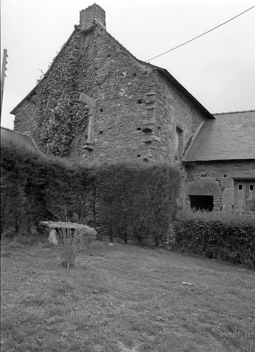 Vestiges de la cheminée d'un corps de bâtiment détruit à l'entrée de la cour.Immatriculation