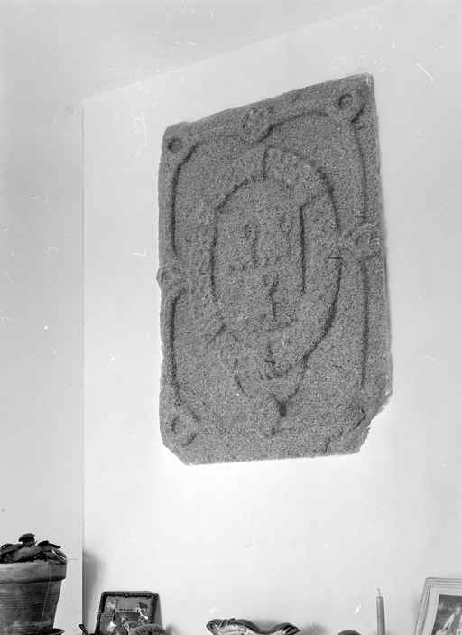 Pierre aux armes des Montboucher, remontée dans une maison de Couédor.Immatriculation