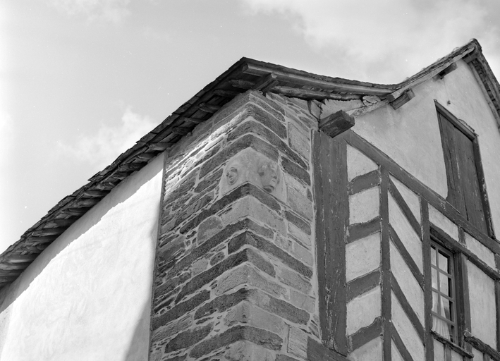Maison 16 rue aux Roux, pierre sculptée à l'angle nord-est.Immatriculation