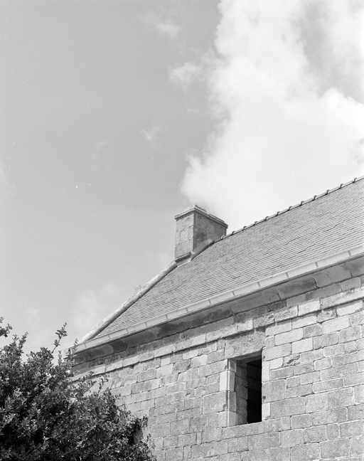 Ferme3, élévation antérieure du logis daté 1820, souche de cheminée ouest. (1978)Immatriculation