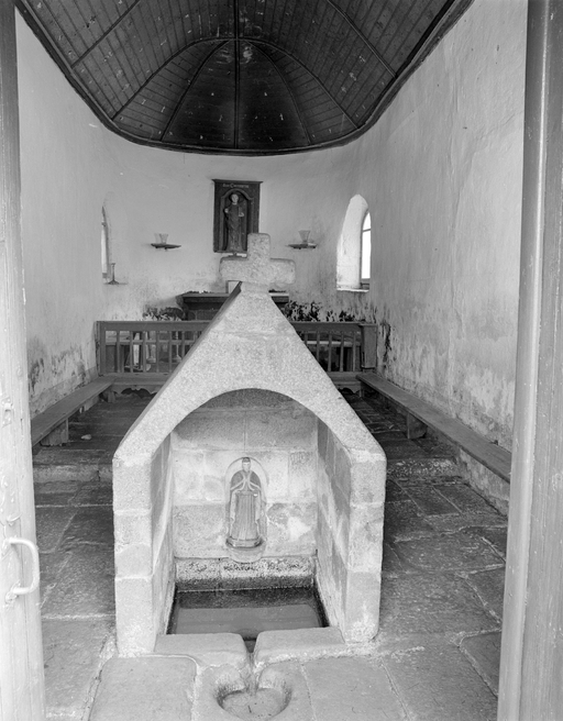 Primelin, chapelle Saint-Chrysanthe : vue intérieure ouest/est, état en 1978Immatriculation
