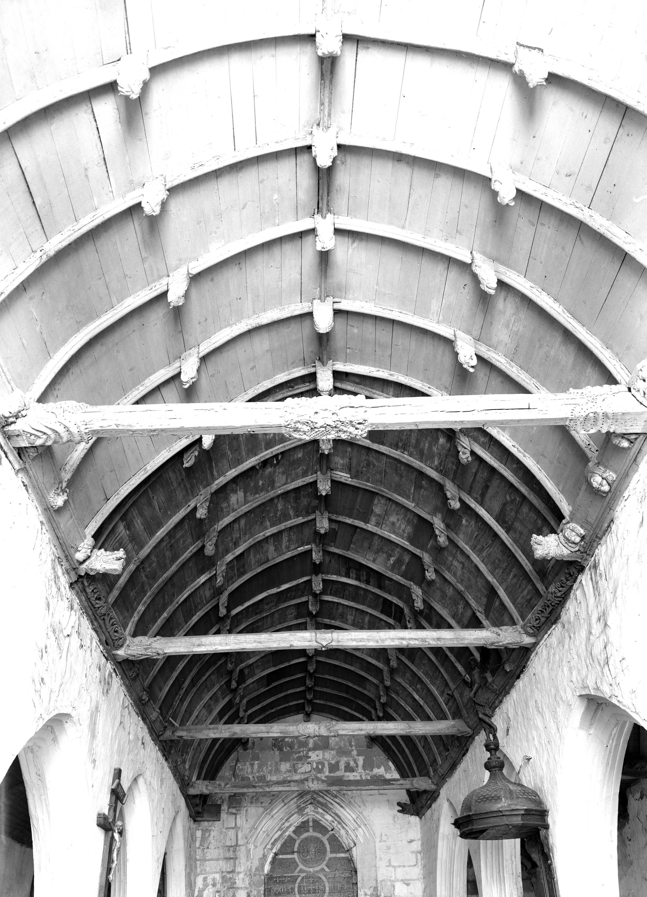 Charpente de la nef, prise de l'est. (1978)Immatriculation